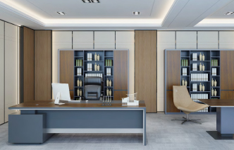 由全鋁打造的全鋁家具董事長辦公桌,黑色皮紋紋理和實木紋理熱轉(zhuǎn)印的混搭突出產(chǎn)品的莊重時尚。適合各種不同方位的辦公室。
